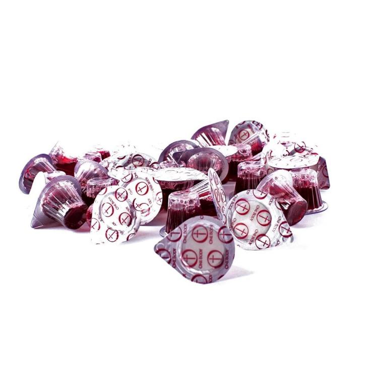 Each cup contains 1/6 oz, (5 ml) of grape juice.