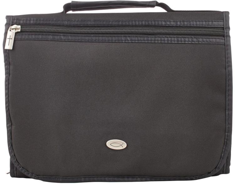 Experience unparalleled convenience in Bible study organization with our Black Micro-Fiber Tri-Fold Organizer Bible Cover. Expertly crafted from premium micro-fiber~ this sophisticated cover not only offers robust protection for your Bible but also features an intelligently designed three-fold layout to house all of your study essentials securely.