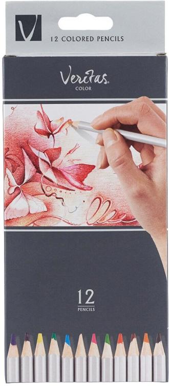 Unleash your creativity with Veritas Colored Pencils. The small set holds 12 Colors: Red~ Black~ Brown~ Blue~ Green~ Yellow~ Hot Pink~ Purple~ Orange~ Dark Blue~ Dark Green and Tan. Use these colors by themselves for beautifully deep coverage~ shade them from pale to light or layer them to create new hues.