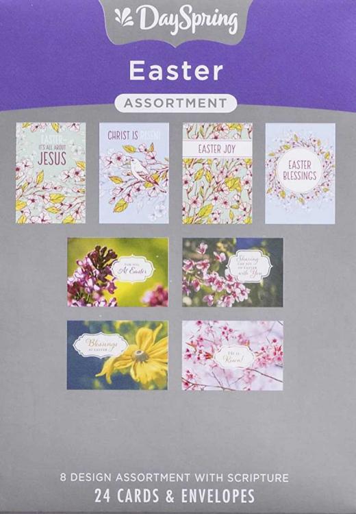 This assorted floral Easter cards boxed set from DaySpring is the perfect way to share Easter blessings with family and friends and to celebrate the true meaning of Easter Christ Is Risen! Four card designs include a stanza from a beloved Easter hymn.