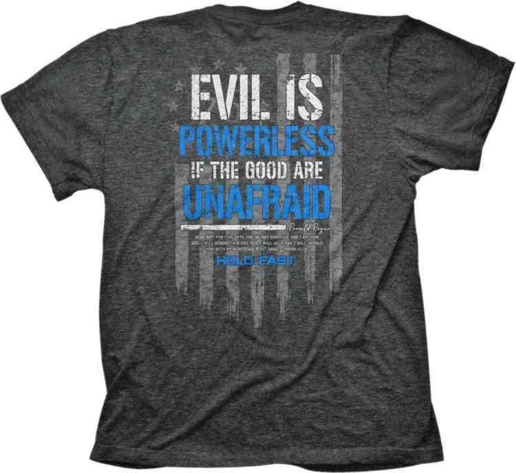 Send fear packing in this cool Evil Is Powerless Adult T-shirt by HOLD FAST in Charcoal Heather. In the face of great challenges and difficult foes, don t turn tail and run; turn to Jesus!