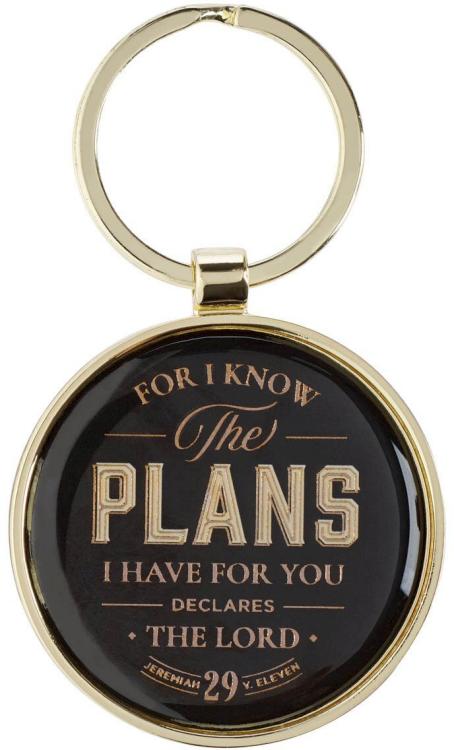 Send your graduate into the world with a promise that God has a good plan for his life with the Plans Black Metal Keychain in Gift Tin. Seeing this stylish reminder on his set of keys every day will guide and shape his path.