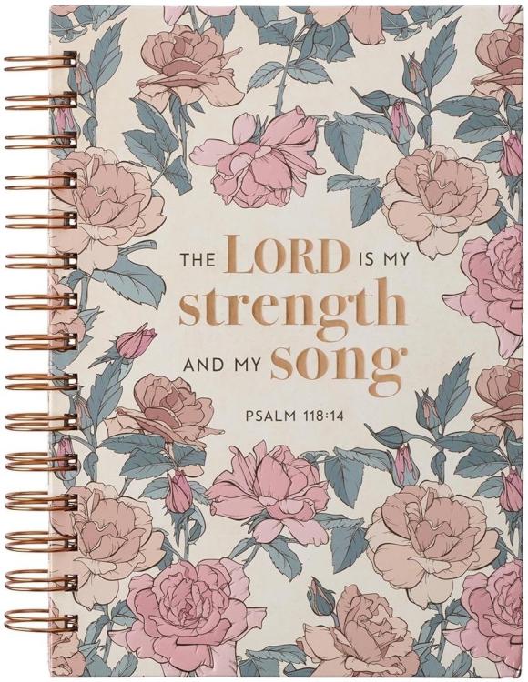 The My Strength and My Song Pink Rose Wirebound Journal sings praises to the LORD and reminds us of his unwavering love and care. Reflect on that truth when you sit down to record your prayers or hopes in this lovely journal.