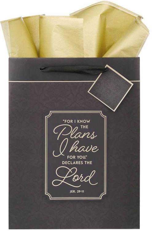 Some gifts deserve more than a quick wrap—they deserve a promise for a bright future. The I Know the Plans Graphite Gray Large Portrait Gift Bag turns any present into a thoughtful reminder that God’s got every step ahead already planned out.