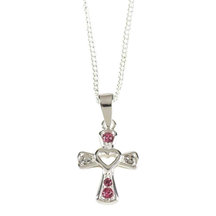 These heart and cross designs beautifully convey Jesus’ message in John 13:35, “By this everyone will know that you are my disciples, if you love one another.” Each necklace is silver plated and comes on a hanging display card with a cheery design and the Bible verse. All have a 16″ chain.