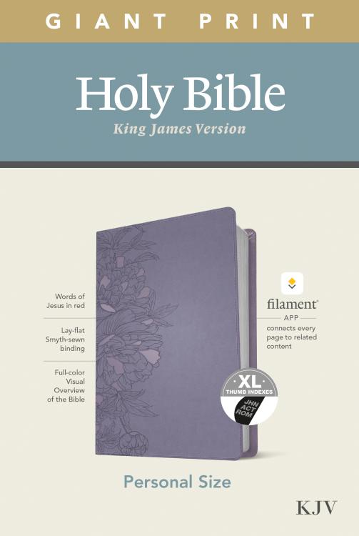 Bible Reading: IlluminatedThe new Tyndale KJV Personal Size Giant Print Bible, Filament-Enabled Edition, has readable text and an attractive layout in an easy-to-carry size. And while it has the same low price as basic, text-only Bibles, the KJV Personal Size Giant Print Bible offers much more. Along with the trusted and revered King James Version (KJV) text, it also includes the groundbreaking Filament Bible app, which turns this Bible into a powerful study and devotional experience, offering more to expand your mind and touch your heart than you can possibly hold in your hand-at no additional cost, no additional bulk or weight. Read this Bible on its own, or dig deeper with the Filament Bible app. Use your mobile phone or tablet to connect every page to a vast array of related content, including:25,000 study notes350+ videos40+ maps and infographics400+ profiles and articles1,500+ devotionalsLibrary of worship musicSpecial features include:New, easy-to-read page designsFilament content linked to every page!Readable large printHandy thin sizeWords of Jesus in redQuality lay-flat Smyth-sewn bindingTyndale Verse FinderPresentation pageRibbon markerGilded page edges