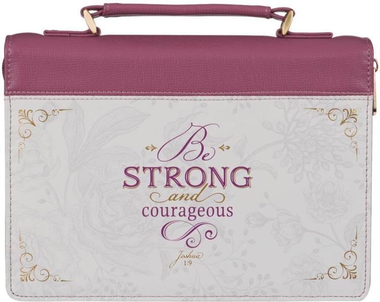 Let the quality construction of the Strong and Courageous Topas Pink Faux Leather Fashion Bible Cover protect your Bible as its message inspire you to act—with God by your side you can climb any mountain or face any battle.