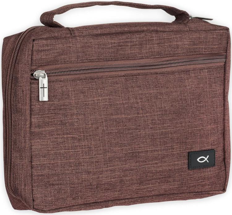Polyester Bible Cover for Men & Women w/ Jesus Fish Patch, Secure Zipper Pocket,