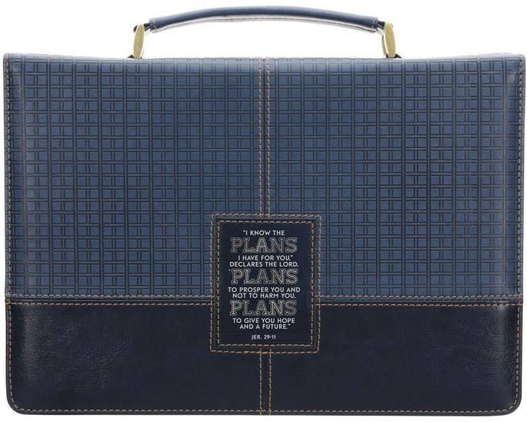 The Plans Modern Blue Grid Faux Leather Classic Bible Cover is one of many gift items within The Plans Modern Blue Grid Collection. Choose a gift for a grad, a friend undergoing a big job change, or a coworker moving away. This collection also includes a zippered journal, keychain, mug, stainless steel water bottle, faux leather bookmark, and gift bag.
