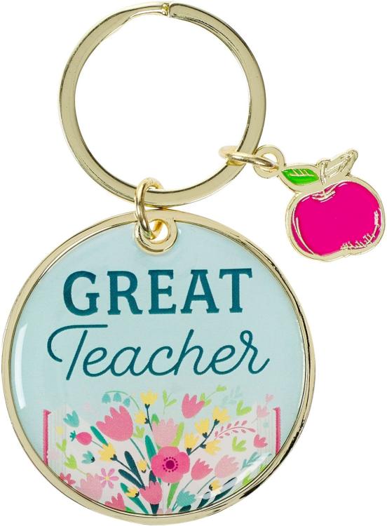 Show your appreciation to an exceptional teacher by gifting her the exquisite Great Teacher Epoxy-coated Metal Keychain with Charm.