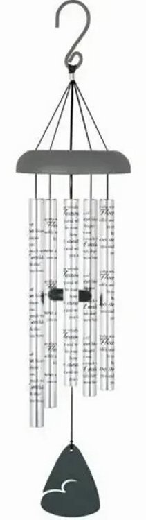 Each chime has an adjustable striker. Tubes are 7/8″ in diameter, sentiment is printed directly onto the tubes. Each tube reads, “May the winds of Heaven blow softly and whisper in your ear, how much we love and miss you and wish that you were here.”
